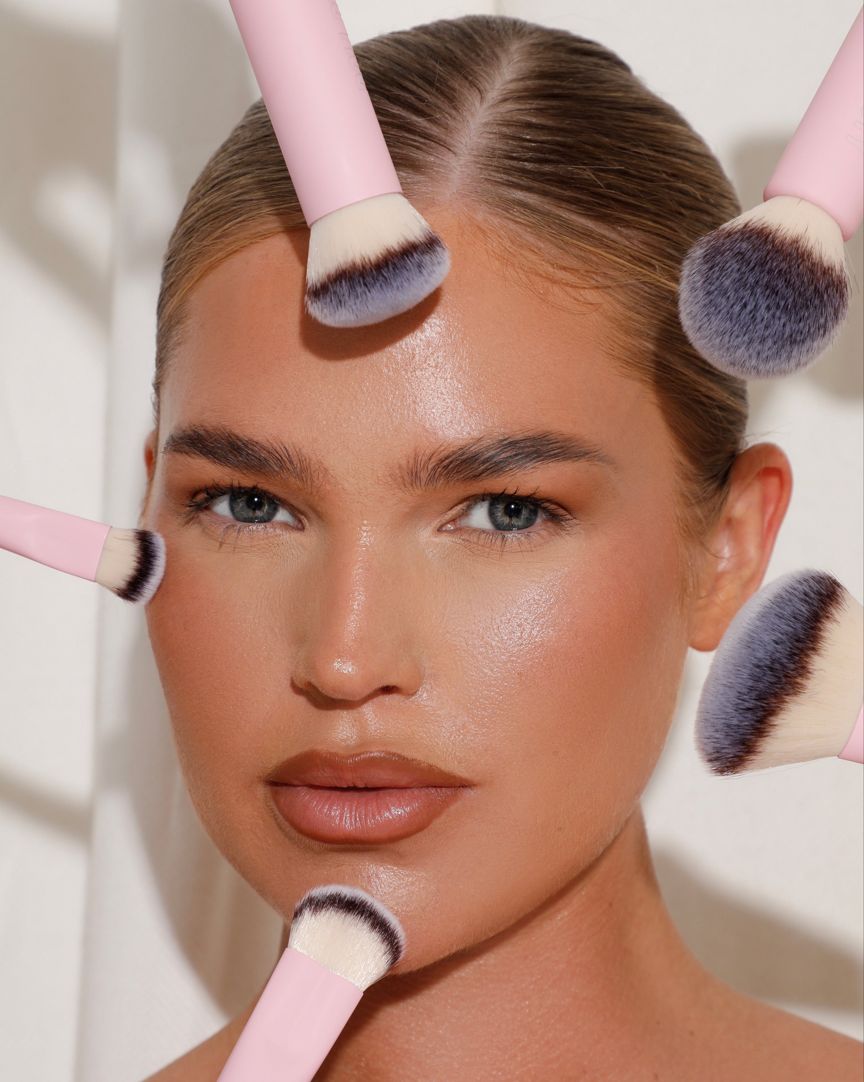 Limited-Edition PR Box, ultra-soft vegan brushes, sponge, puff, and brush cleaner for an airbrushed finish on demand.